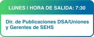 LUNES 7:00 Director de Publicaciones DSA, Directores de Publicaciones Uniones y Gerentes de SEHS